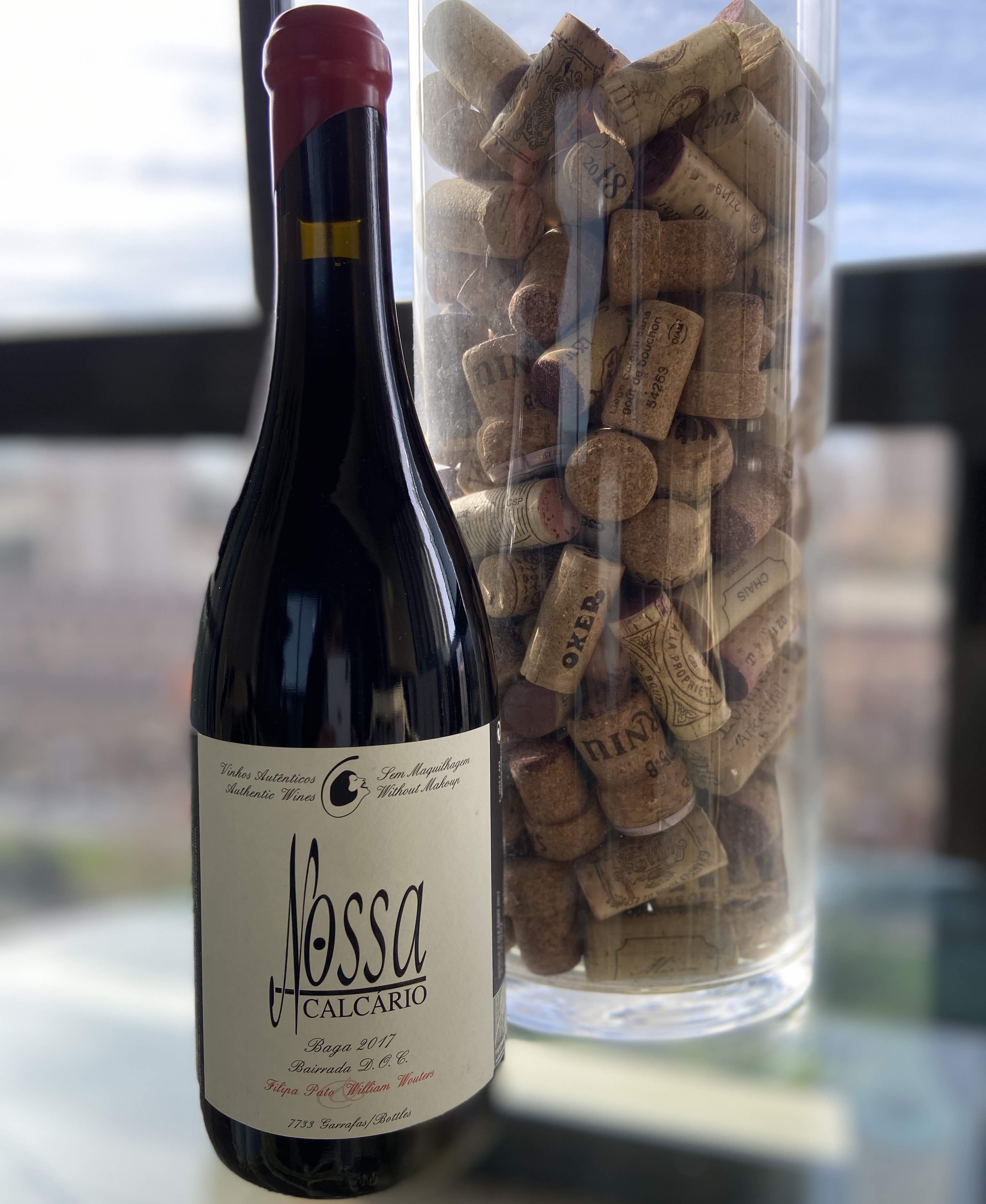 Escolhemos o vinho Nossa Calcário Tinto 2017 da produtora Filipa Pato. Ele é um varietal (feito a partir de uma só variedade de uva) de Baga, da Denominação de Origem Bairrada.