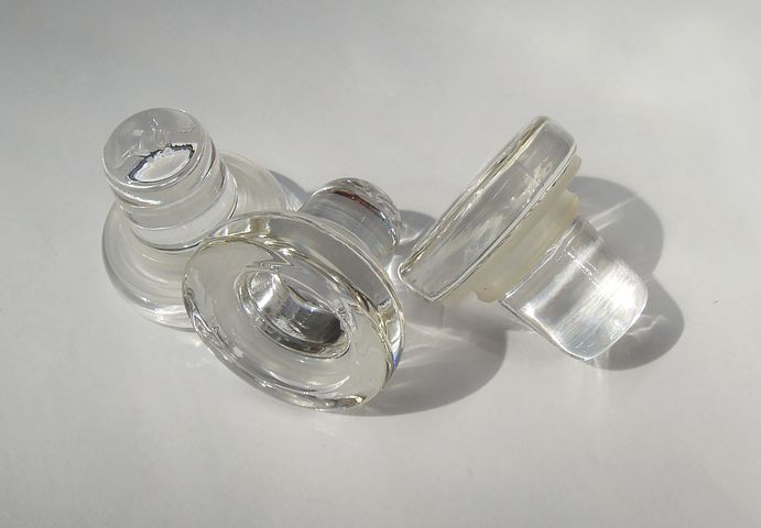 - São tampas feitas de vidro com um anel de acetato vini-etilênico. Tem um custo elavado para ser produzido, com a vantagem de ser reciclável e não altera os aromas e sabores do vinho, porém ainda faltam estudos mais conclusivos sobre sua eficácia;